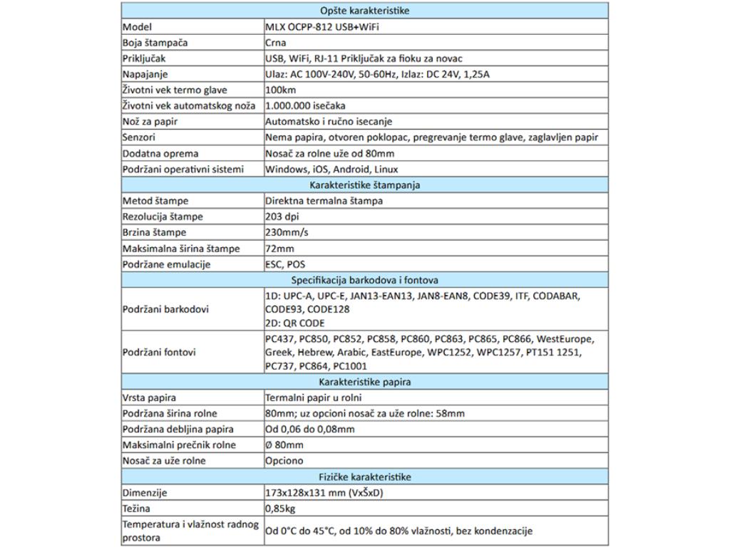 Termalni štampac MLX OCPP-812 USB+WiFi